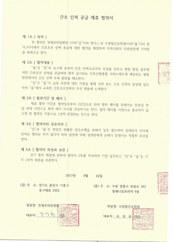 연세프라임병원 > 간호인력공급협약병원
