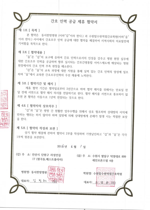 동서한방병원 > 간호인력공급협약병원