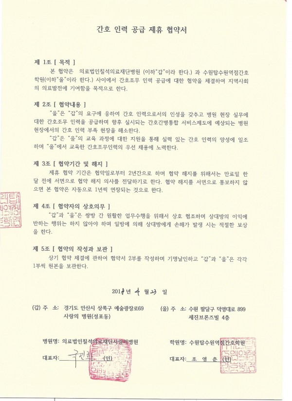 간호인력공급협약병원