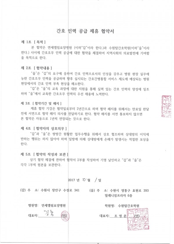 연세엘림요양병원 > 간호인력공급협약병원