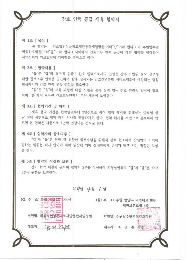 의료법인상운의료재단동탄제일병원 > 간호인력공급협약병원