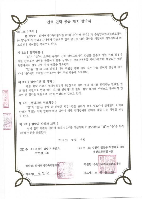 화서연세가족사랑의원 > 간호인력공급협약병원