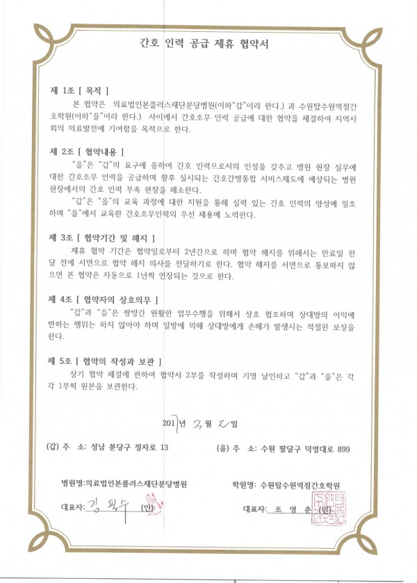 의료법인본플러스재단분당병원 > 간호인력공급협약병원