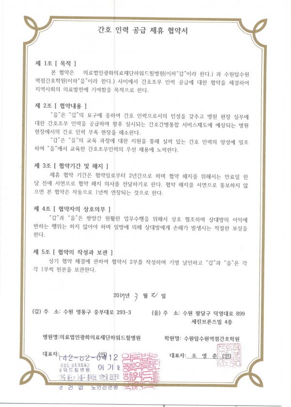 의료법인광화의료재단하워드힐병원 > 간호인력공급협약병원