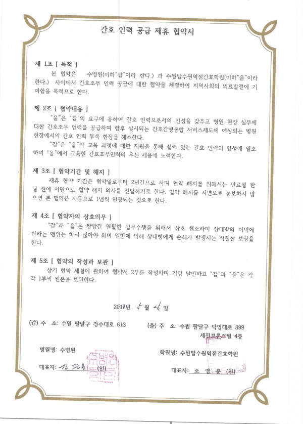 수병원 > 간호인력공급협약병원