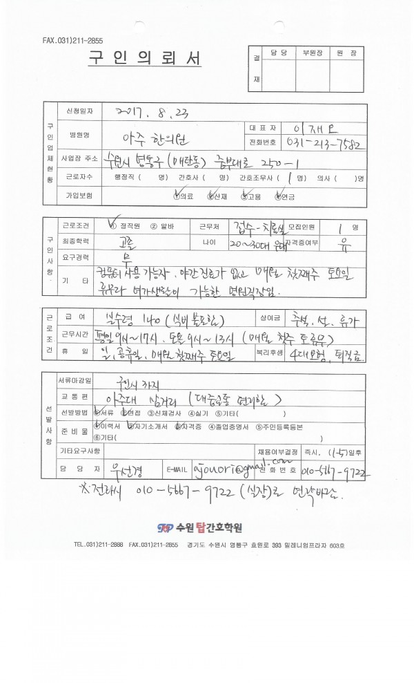 | 제목 | 아주한의원 채용공고입니다. | 작성일 | 17-08-24 14:42 |