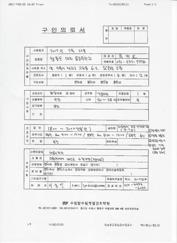 - 다음글해아림한의원 채용공고입니다. 17.02.21