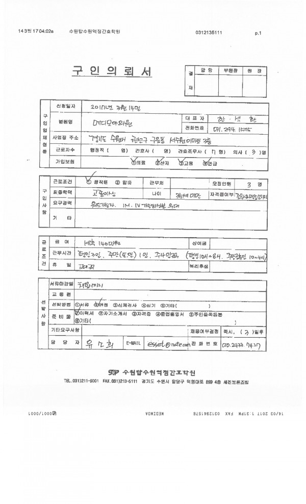 | 제목 | 메디모아의원 채용공고입니다. | 작성일 | 17-03-14 13:34 |