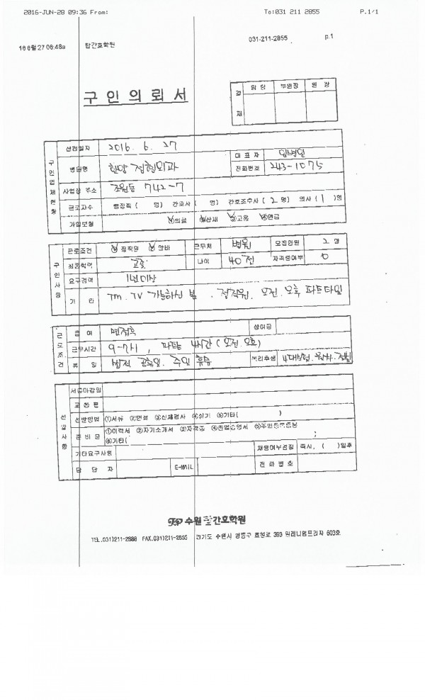 | 제목 | 한양정형외과에서 채용정보가 왔습니다 | 작성일 | 16-06-29 11:54 |