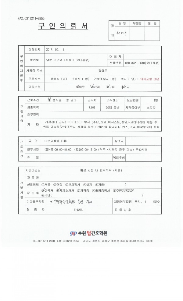 | 제목 | 남문 이안과 채용공고입니다. | 작성일 | 17-09-11 17:41 |