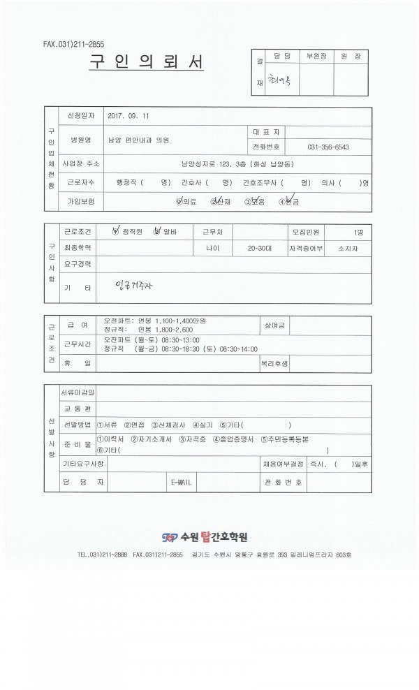 | 제목 | 남양 편안내과의원 채용공고입니다. | 작성일 | 17-09-11 17:44 |