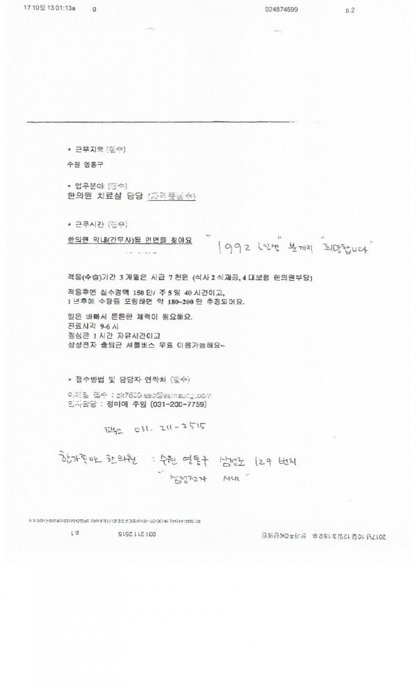 - 다음글경희365늘한의원 채용공고입니다. 17.09.21